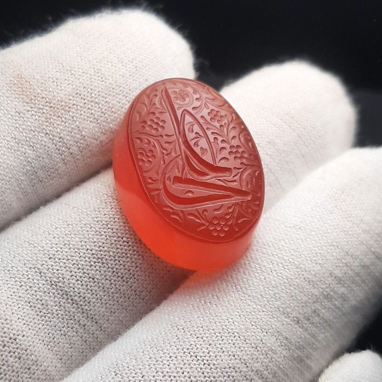 عقیق خطی یمانی با حکاکی دستی علی هنر دست ایتاد معصومی امضا یس