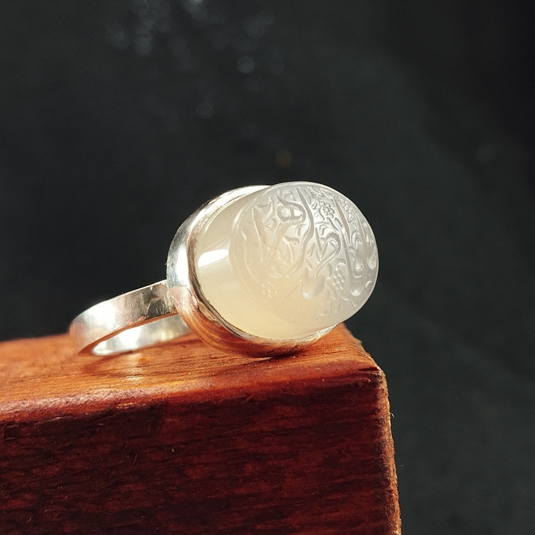 انگشتر دستساز عقیق یمانی خطی با ذکر یافاطمه الزهرا